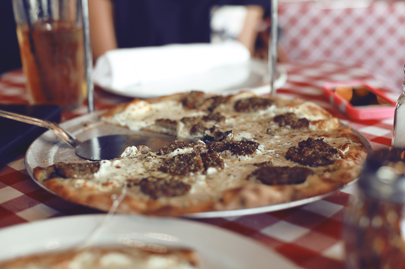 Grimaldi's ended up being delicious! The pizzas are completely customizable, so you can choose pretty much everything, down to whether you want tomato pizza sauce, garlic white sauce or pesto instead, to be smothered upon the crust of your pizza!